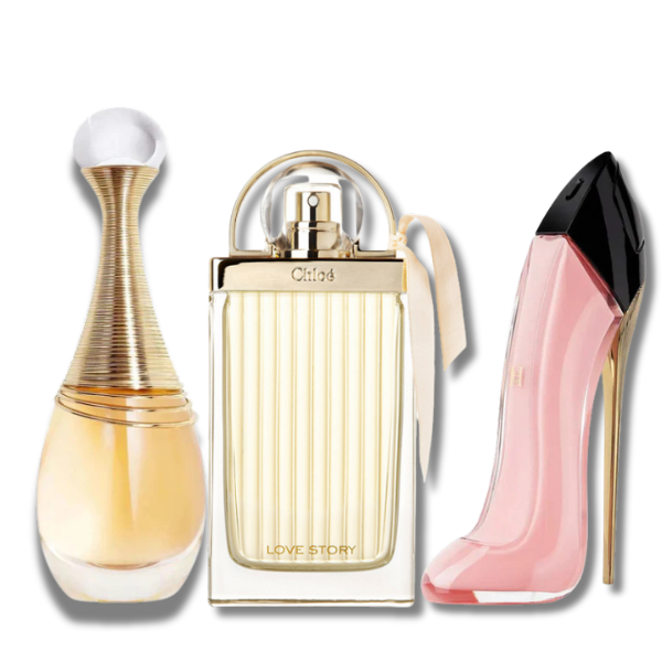 Eleve su colección de fragancias con nuestro Set de 3 Perfumes: Dior J'ADORE, Chloé LOVE STORY y Carolina Herrera GOOD GIRL BLUSH EAU DE PARFUM 100ML. Este exclusivo trío es perfecto para las mujeres que desean expresar su feminidad, encanto y audacia en cualquier ocasión.