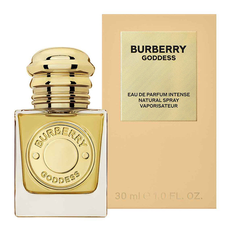 Inspirée des couleurs du soleil couchant, l’eau de parfum Burberry Goddess Intense, au parfum légèrement ambré, est présentée dans un flacon luxueux orné d'un médaillon doré. L'étui d'un beige profond et foncé est rehaussé d’une étiquette dorée d’inspiration gabardine faisant écho à l'héritage de la marque.