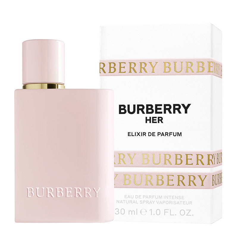 Burberry Her Elixir de Parfum reprend le flacon de l’Eau de Parfum dans un rose plus profond avec un fini opaque reflétant l’intensité du parfum qu'il renferme ainsi que sa nature confiante et sensuelle.