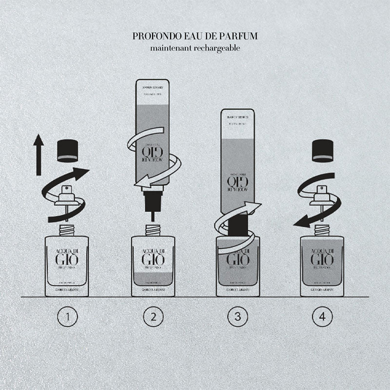Giorgio Armani présente ACQUA DI GIÒ PROFONDO EAU DE PARFUM : un parfum à la fraicheur aquatique aromatique, encapsulé dans un nouveau flacon rechargeable.