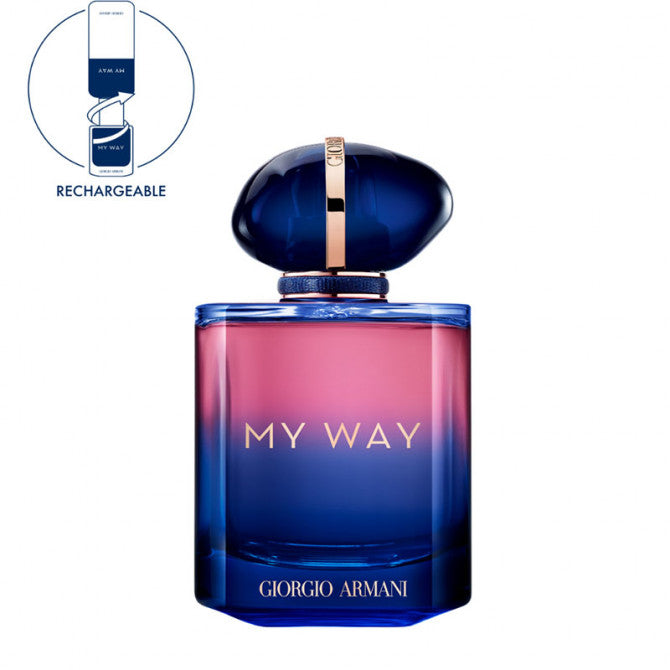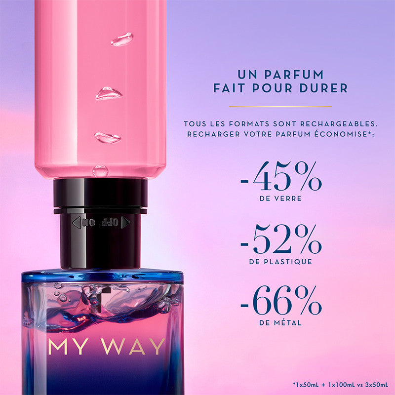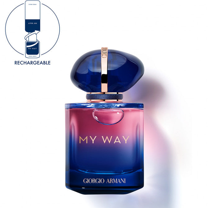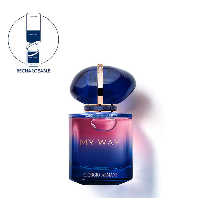 Découvrez le nouveau parfum rechargeable pour femme My Way, une interprétation plus intense, boisée et poudrée de la fragrance iconique My Way.