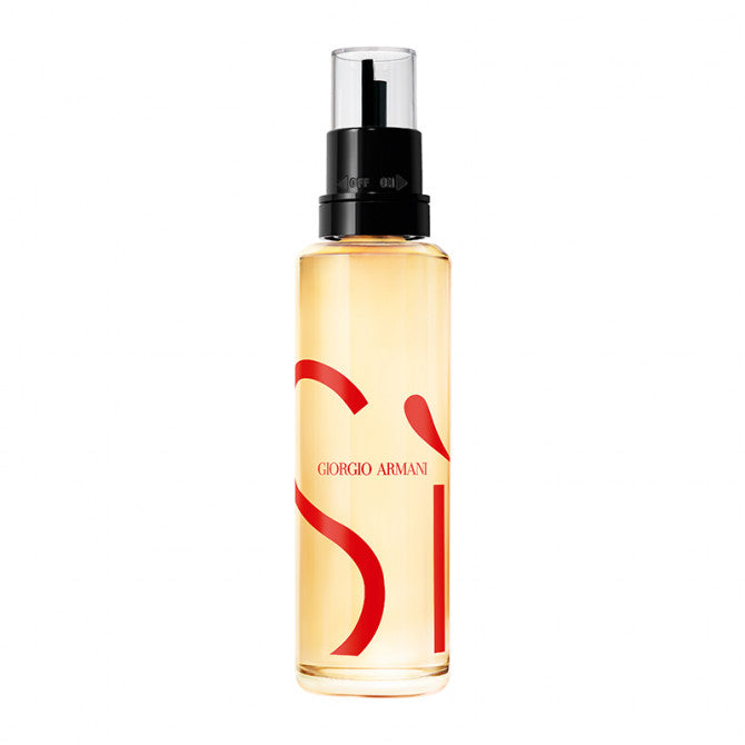 Son flacon est orné du logo Sì, embossé dans le verre grâce à un savoir-faire unique, et paré d'un rouge profond dégradé qui reflète la montée en puissance des émotions ! Un flacon précieux conçu pour durer, rechargeable et recyclable, qui reflète l’engagement de Giorgio Armani envers la planète.