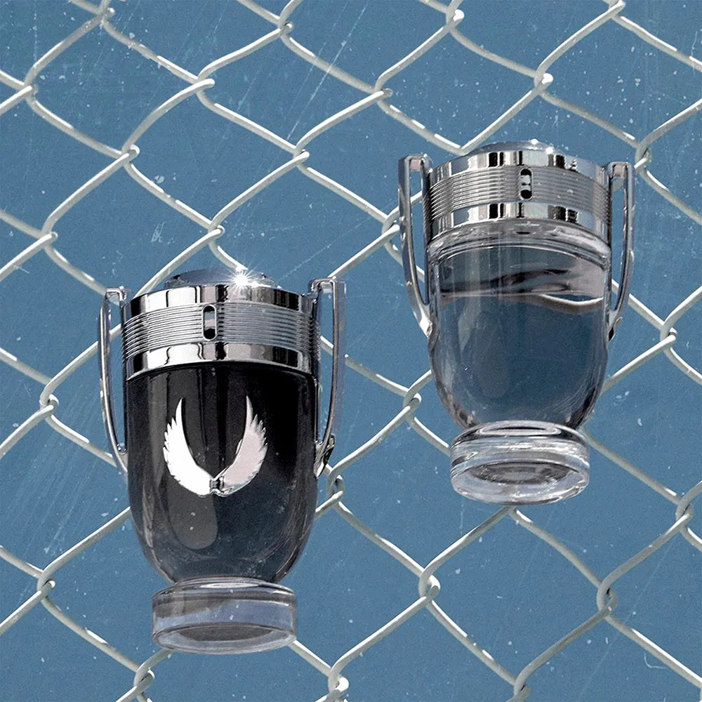 Le iconiche ali di Invictus, per la prima volta, sono stampate con una finitura argentata in rilievo sulla bottiglia a forma di trofeo in platino. Il lussuoso cristallo rivela sfumature di grigio sempre più intense, coronato da cromo. Conquista il tuo trofeo e porta il tuo gioco ancora più in alto.