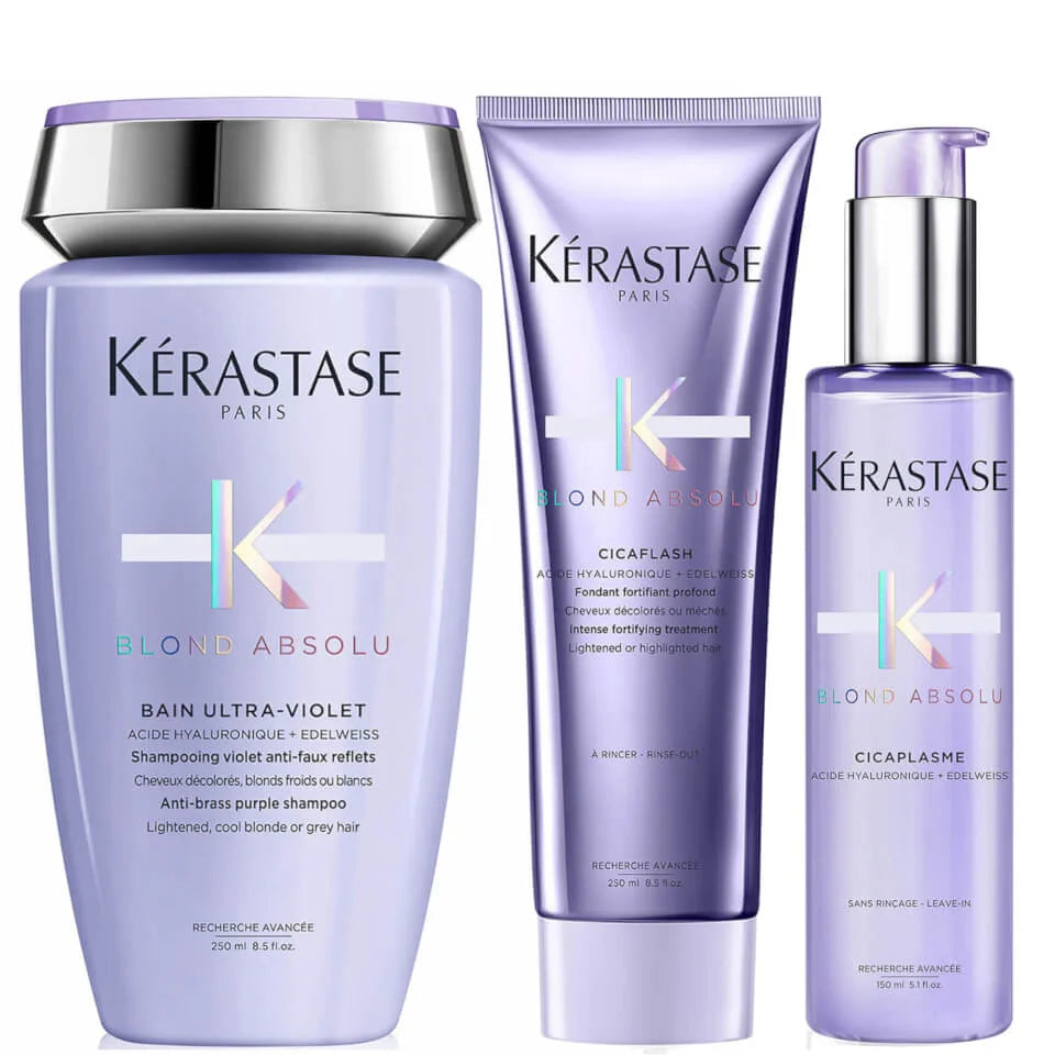 Kérastase Blond Absolu Ultraviolet Shampoo, Conditioner and Treatment Routine for Brightening Blonde Hair