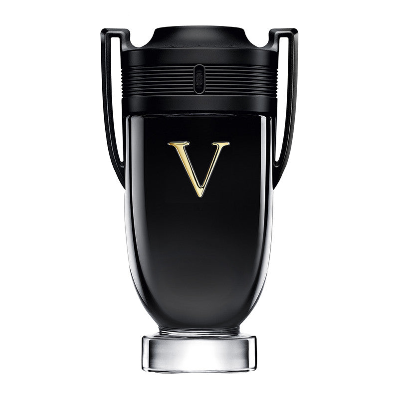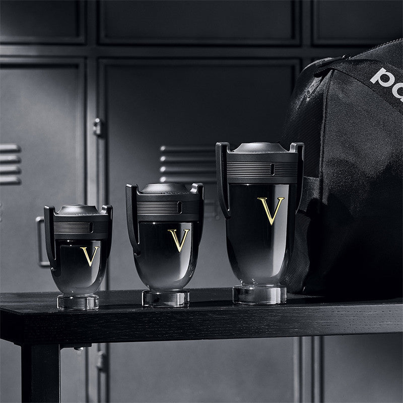 Un trophée sur un socle puissant. Le mythique flacon Invictus revêt pour la première fois un habit noir brillant. Son capot lui aussi arbore cette nouvelle couleur : un noir mat profond pour un contraste percutant. Une nouvelle intensité transcendée en son centre par un imposant V doré.